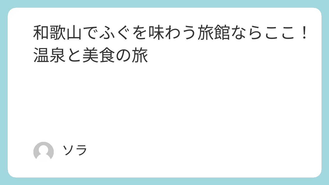 - ふぐをしっかり味わえる旅館を、和歌山エリアから選びたい